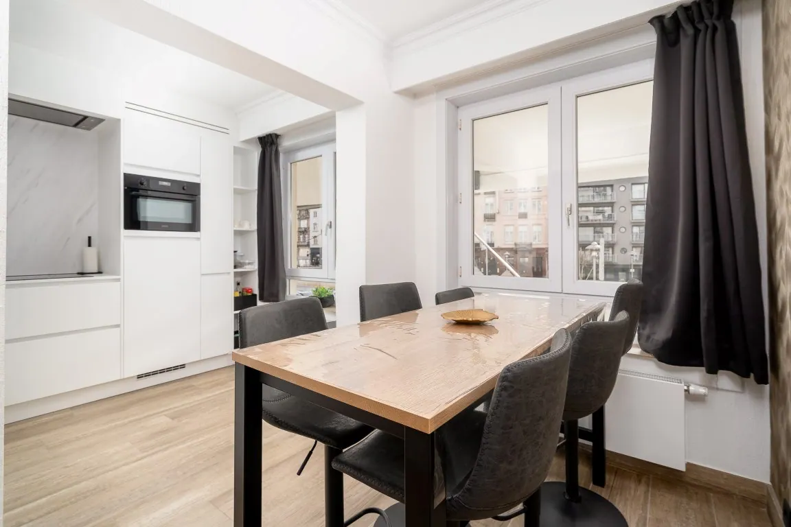 Casinostraat 14 M, 8370 BlankenbergeSubliem gerenoveerd, royale ruimtes, zonnig, gelegen op topligging naast het casino van Blankenberge, op wandelafstand van het bruisende stadscentrum en met een onmiddellijk doorgang naar de Zeedijk, …. Dit zijn slechts enkele troeven van dit hedendaags 3 slaapkamerappartement, dewelke in 2022 kwalitatief gerenoveerd werd, met oog voor duurzaamheid en details, en dewelke afgewerkt werd met sfeermakers en trendy accenten. Via de inkomhal komen we terecht in een zuidgerichte brede leefruimte met een praktisch ingerichte leefkeuken genietende van zicht op het Casinoplein. Naast de living vinden we de masterbedroom voorzien van een multifunctionele kastenwand. Deze slaapkamer staat op zijn beurt in verbinding met een tweede kleinere slaapkamer. Beide slaapkamers hebben toegang tot een klein balkon uitgevende op het binnenplein van de Residentie. De derde slaapkamer bevindt zich aan de voorzijde en geniet hierdoor eveneens over ruime portie daglicht en open zicht op het plein. Vervolgens is er een afzonderlijk toilet en een moderne badkamer voorzien van inloopdouche en grote tegels in een marmer motief. Daarenboven is er nog een privatieve kelder aanwezig. Graag meer info en het pand bezoeken? Aarzel dan zeker niet om ons te contacteren.