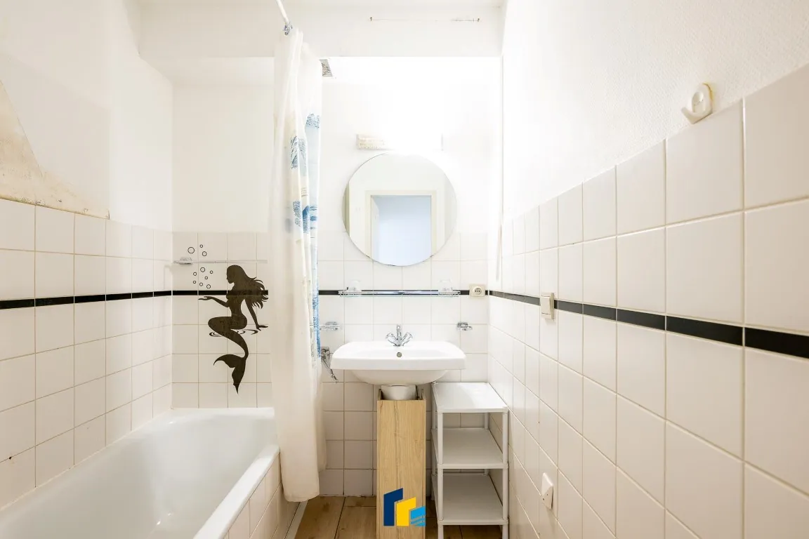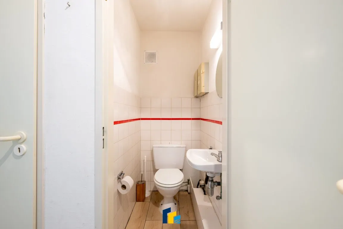 Verder beschikt het appartement over een apart gastentoilet, een badkamer met ligbad, wastafel en een tweede – afzonderlijk – toilet, wat zorgt voor extra comfort en privacy. De slaapkamer is ruim bemeten en biedt voldoende plaats voor een dubbel bed en opbergmogelijkheden.