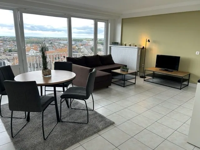 Op de 9de verdieping van Residentie “Les Algues”, een gebouw gelegen op de Zeedijk, bevindt zich deze volledig opgefriste studio met een prachtig, wijds uitzicht over het hinterland. De zuidgerichte oriëntatie van zowel de leefruimte als het balkon zorgt voor een dubbele troef: zon, licht én een uniek verzicht dat nooit verveelt.