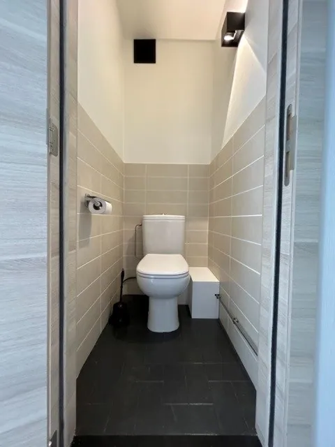 De studio werd met zorg ingericht met trendy meubilair en frisse kleuren, wat zorgt voor een hedendaagse en gezellige sfeer. De badkamer beschikt over een ligbad/douchecombinatie, een enkele wastafel en een praktische kolomkast. Een afzonderlijk gastentoilet en een inkomhal met ingebouwde kasten bieden extra comfort en bergruimte. Bovendien is er een privatieve kelderberging aanwezig.